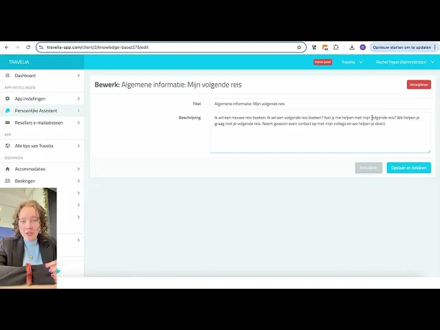 Voeg een foto, contactgegevens en openingstijden toe. Bekijk de video om te zien hoe je de gegevens van de reisspecialist invoert en wijzigt.